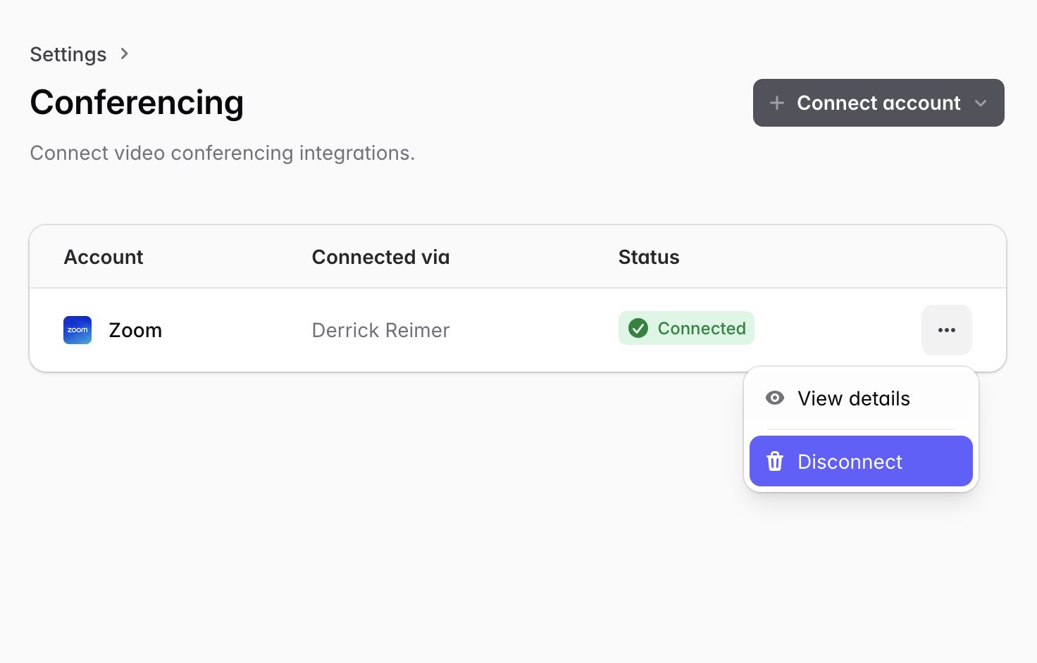 - Click on Settings > Conferencing, then click Disconnect on the Zoom app in SavvyCal.